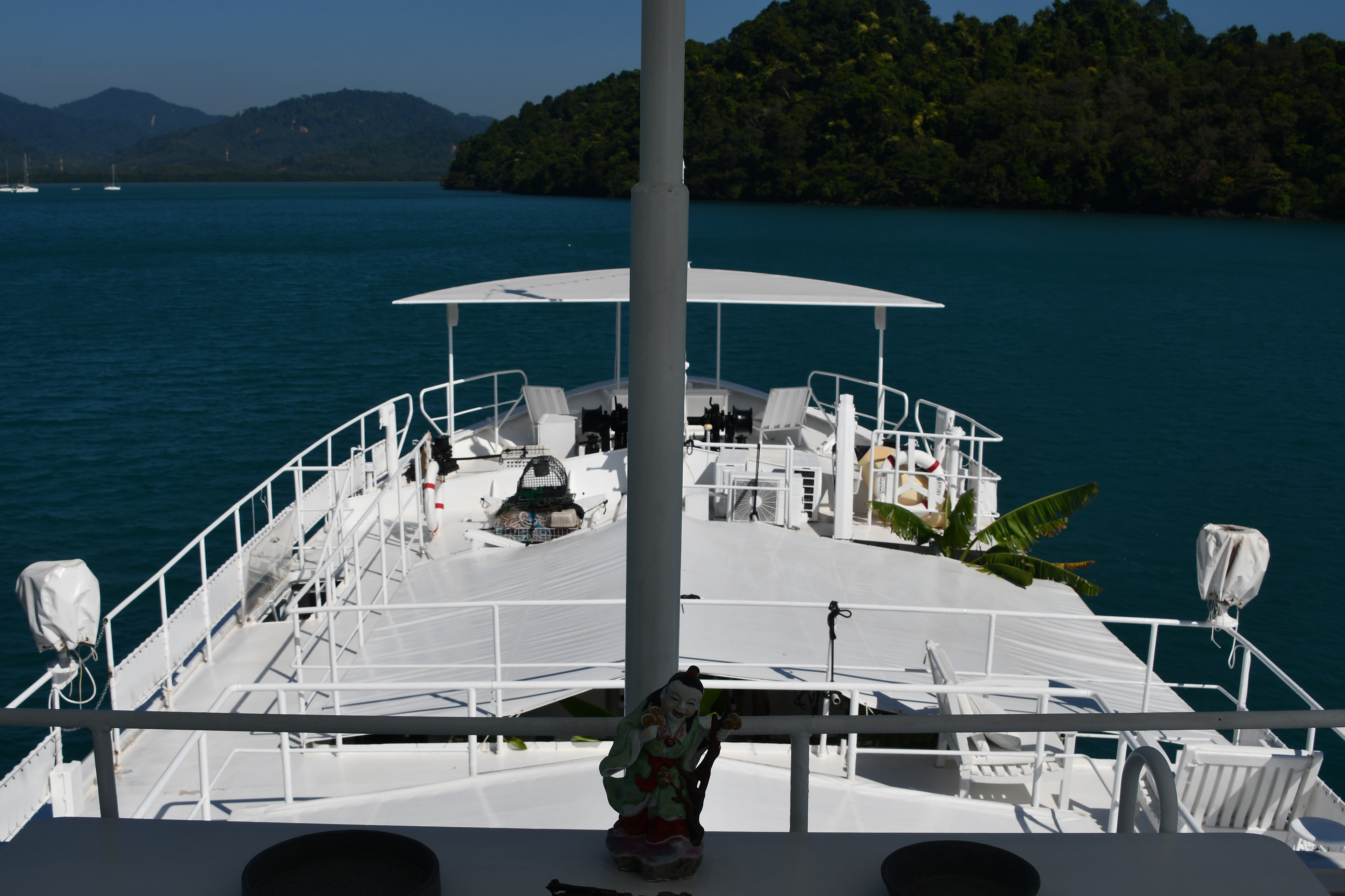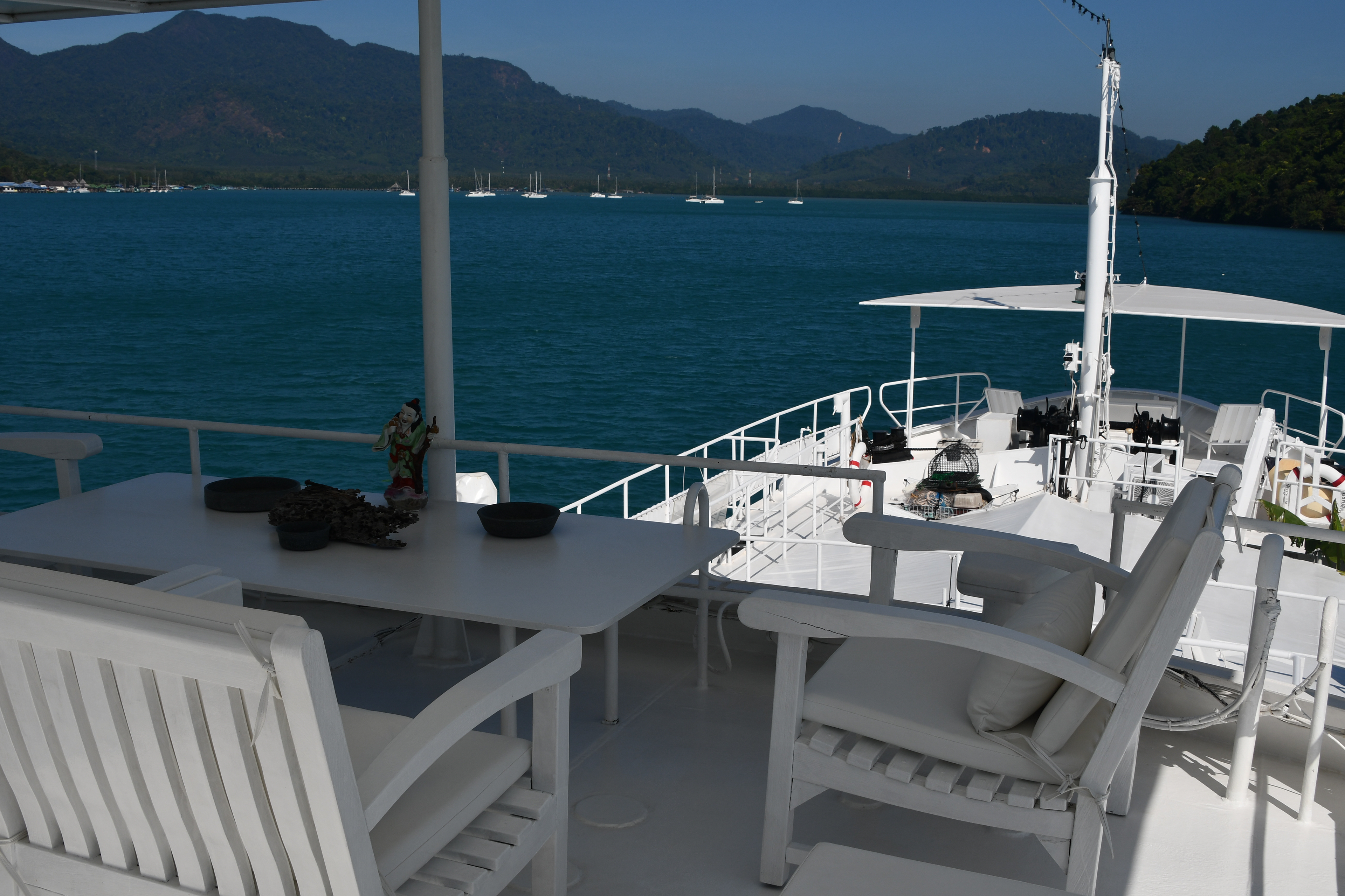 Nothing predisposed her to her new functions, far from it! With her cramped, aborted appearance, her ugliness, her smallness, her misfortune, God, she was so awkward and smelled of the tide! Only a robust conversion could redeem her. Twelve months later, after a fierce trench war against the Singapore shipyard, whose only skill was the promptness to draw out additional quotes, and strong from our vow to never again in our lifetime set foot in a shipyard, we set off joyfully for our first distant journey: Burma! This young scatterbrain immediately revealed a promising taste for adventure, to which she surrendered with passion and without restraint, in every position. Her character led us to disregard the vow and took us, a year later, to another shipyard for a true extension, a somewhat audacious step.